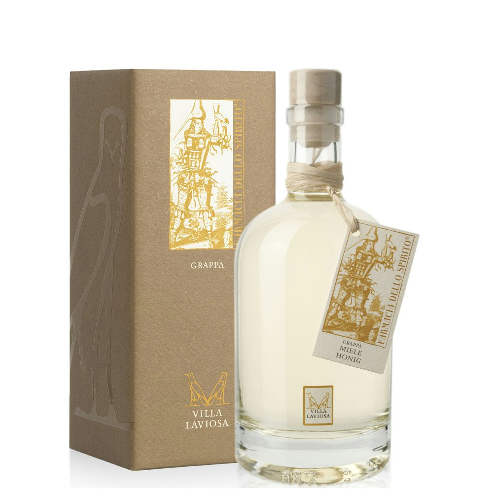 E' ottenuta grazie ad una lavorazione a freddo di miele di acacia, per circa 30 giorni, in grappa giovane, così da preservarne le caratteristiche organolettiche. Ha un gusto finemente dolce, dovuto esclusivamente alle caratteristiche del miele. Con astuccio regalo.